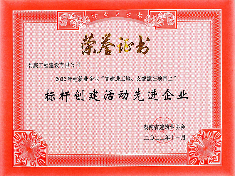 2022年建筑業企業黨建進工地支部建在項目上標桿創建活動先進企業榮譽證書